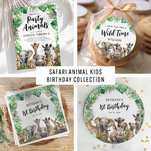 These kids’ jungle birthday paper plates featuring noble lions, graceful giraffes, mischievous monkeys and a host of other exotic animals that will compliment your rainforest safari party decor.