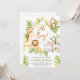 This is fresh baby shower invitation featured cute safari animals arranged with fresh greenery tropical leaves