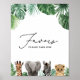 Invite baby shower guests to take a favour with this safari themed sign, featuring watercolor animals and tropical greenery.