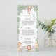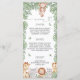 A safari-themed baby shower menu template featuring watercolor jungle animals and tropical greenery. Designed to present starter, entree, and dessert options in an elegant layout. Perfect for Wild One, jungle, or gender-neutral baby shower themes and coordinated party stationery sets.