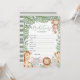 A safari-themed baby shower prediction card featuring watercolor jungle animals and tropical greenery. Guests can fill in their guesses about the baby’s arrival and features, adding a fun and memorable activity to the celebration. Perfect for Wild One, jungle, or gender-neutral baby shower themes and coordinated party stationery.