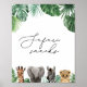 Invite baby shower guests to dig in with this safari themed sign, featuring watercolor animals and tropical greenery.