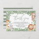 A safari-themed baby shower thank you card featuring watercolor jungle animals and tropical greenery. Designed to express appreciation for guests’ presence, gifts, and warm wishes. A thoughtful addition to Wild One, jungle, or gender-neutral baby shower themes and a coordinated stationery set.