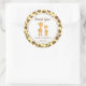 Round sticker for baby shower favour with safari animal theme and giraffe design.