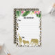 Safari themed time capsule card featuring three fuax gold glitter animals, a tropical floral arrangement and cheetah print pattern.