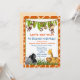 A birthday party invitation with a cool safari theme. The background is a giraffe skin pattern. Designed with a banner of jungle leaves at the top and a mischievous monkeys hanging upside down. A hippo, gorilla, lion and giraffe hanging out on the bottom in some savannah grasses. Personalise with your party details.