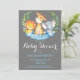 Safari Jungle Animals Boy Baby Shower Invitation. Blue and Grey Card. Boy Baby Shower Invite. Watercolor Floral Flower and Leave. For further customisation, please click the "Customise it" button and use our design tool to modify this template.