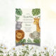 Get ready to celebrate a wild little one with this playful safari jungle baby shower invitation! Featuring adorable watercolor animals including a lion, giraffe, hippo, and elephant surrounded by tropical monstera leaves, this design is perfect for a fun and adventurous baby shower.
