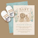 A cute family of lions decorates this boy baby shower invitation. Personalise it for the mother to be. Designed for you by Blackberry Boulevard.