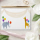 Three African safari party animals are ready to celebrate with colourful balloons and party hats on this decorative and custom birthday party invitation envelope complete with a handy pre-printed return address and a colourful printed liner pattern.