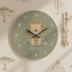 Keep time stylishly with this adorable lion portrait wall clock. The timepiece features the sweet, stylized lion and the encouraging caption, "STRONG & SWEET," making it a perfect functional decoration for a child's bedroom or playroom. The muted olive-green face, along with the contemporary numbering and clear hands, makes learning to tell time fun and easy. This clock blends beautifully with modern, neutral, or safari-themed decor. Part of our coordinated 'Kid's Safari Decor' collection. Note: design adapted from generative content.