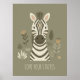 Introduce a touch of serene, wild charm to a child's space with this adorable zebra portrait print. Featuring a sweet, hand-drawn style zebra, the artwork is set against a soothing, muted olive-green background. Soft, botanical illustrations surround the central figure, giving the piece a gentle, safari-inspired feel. The caption, "LOVE YOUR STRIPES," adds a positive message of self-acceptance and uniqueness. This print is perfect for decorating a young child's bedroom or playroom with contemporary, calming nursery art that sparks imagination and joy. Part of our coordinated 'Kid's Safari Decor' collection. Note: design adapted from generative content.
