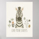 Introduce a touch of serene, wild charm to a child's space with this adorable zebra portrait print. Featuring a sweet, hand-drawn style zebra, the artwork is set against a soothing, soft ivory white background. Soft, botanical illustrations surround the central figure, giving the piece a gentle, safari-inspired feel. The caption, "LOVE YOUR STRIPES," adds a positive message of self-acceptance and uniqueness. This print is perfect for decorating a young child's bedroom or playroom with contemporary, calming nursery art that sparks imagination and joy. Part of our coordinated 'Kid's Safari Decor' collection. Note: design adapted from generative content.