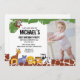 A monkey, giraffe, hippo, lion and zebra illustration can be found on this fun first birthday party invitation. If you're thinking about a theme that lends itself well to fun patterns and playful decorating, I think the safari, jungle theme is amazing. I created these fun animal characters for my son's birthday party. Customise with your party details. Personalised with your child's photo and party details. Have fun!