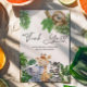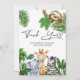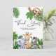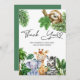Express your gratitude in style with this delightful safari-themed thank-you card. Featuring a playful sloth, an adorable giraffe, zebra, and elephant surrounded by lush tropical greenery, this card is the perfect way to thank your guests for making your baby shower extra special. The elegant handwritten font adds a heartfelt touch to this charming design.