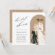 This wedding bridal shower invitation features a boho lady with a flower bouquet, leopard, and an arch frame with modern calligraphy. For more advanced customisation of this design, please click the BLUE DESIGN TOOL BUTTON. Matching items are also available.