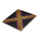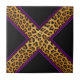 Trendy safari leopard print X on black background, outlined in pink and purple lines.