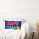 Wrap your space in comfort and courage. The **Safe Space Sanctuary Pillow** features a bold rainbow design with the words “SAFE SPACE” shining against a deep navy blue background—creating a cosy and powerful statement of inclusion.