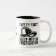 Get this Safety First, Sleep With a Firefighter | Funny QuoteTwo-Tone Coffee Mug to show your concern for safety.