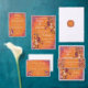 Hand drawn wildflowers on a saffron sunset sky background - wine bottle label