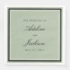 These eucalyptus green wedding cocktail napkins feature a simple border of black and white lines that frame elegant and easy to personalise couple's names and wedding date text with lots of light and airy white space for that high-end look in line with the new traditional grand millennial style.