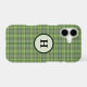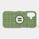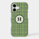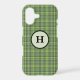 Shades of sage and olive green in an intricate plaid pattern makes this beautiful iPhone case stylish. Personalise with your monogram in a green circle.