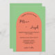 In this modern wedding invitation designed using pastel colours, the background colours are sage and salmon.
