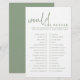 Elevate your bridal shower with the Sage and White Would She Rather Game - a simple, sophisticated twist on a classic party game. This stylish game brings a touch of elegance to your bridal shower celebration. With its clean, minimalist aesthetic, it seamlessly complements any modern, chic bridal shower theme. But don't let the refined look fool you - this game is packed with fun, thought-provoking questions that are sure to get everyone laughing, chatting, and bonding. Whether the guest of honour loves fashion, food, or romance, the versatile question prompts will speak to all her interests. Surprise and delight your bridal party with an unforgettable shower that balances style and substance.