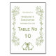 Sage coloured wedding table number bells design. You can customise this sage coloured wedding table number with your own wedding details. Should you require any help with customising then contact us through the link on this page. Bells scrollwork design personalised sage coloured wedding table number