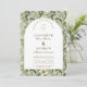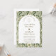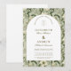 A sophisticated botanical design featuring rich green foliage and soft ivory blooms, framed within a timeless arched layout. The deep, nature-inspired tones bring a sense of depth and refinement, while the clean typography keeps the overall look elevated and effortless.