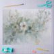 This soft sage botanical paper collage design features layered watercolor florals, delicate lace textures, and airy foliage arranged in an elegant, handcrafted composition. Inspired by vintage botanical journals and paper collage art, the design blends muted greens, creamy blooms, and subtle translucent overlays for a refined yet organic look.