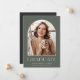 Elegant photo graduation announcement features a vertical or portrait orientated photo in a unique arched layout, on a dark sage green background. "Graduate" appears beneath, along with your graduate's name and school or college. Add a personal message to the back, along with an additional photo.