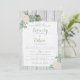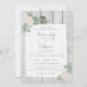Gorgeous country-chic modern wedding invitation design with colour combinations of sage greens, french blue-greys, creamy whites and white grey rustic wood background element is incorporated in this sage green, floral flowers & white rustic wood wedding invitation design. White is incorporated in the wedding invitation design to brighten up this floral sage green and smokey greys wedding theme, as well as create a clean, modern and sophisticated wedding invitation design. A soft and natural floral bouquet flower arrangement of cream white hydrangea, sage leafs, rosemary sprigs, sage roses and echeveria rosettes, beautifully complements this wedding design.