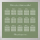 Sage Green 15 Table Wedding Seating Chart Poster, please personalise the names of the couple and the names of the guests along with any of the other text that you may wish to personalise. A stylish seating chart poster featuring elegant white text on a lovely sage green background.