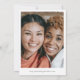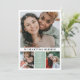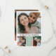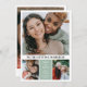 Double sided save the date card with three photos in a modern, minimalist collage on one side and a larger photo on the other. Add your wedding details in white against a sage green background. The photo save the date features a white border.