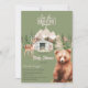 This elegant sage green Adventure Awaits theme baby shower invitation will be the perfect beginning to your mountain and woodlands baby shower. Featuring watercolor mountains, a camping tent and cute forest animals like bear, rabbit and deer. A modern Let the Adventure Begin gender neutral invite for a forest inspired baby shower.