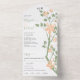 Sage green and peach branch with flowers wedding a all in one invitation