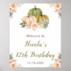 Sage Green and Peach Floral Pumpkins Birthday Poster