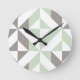 Sage Green and Silver Geometric ZigZag Round Clock