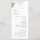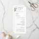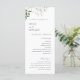 Custom-designed wedding program card featuring modern minimalist design with sage greenery and white floral.