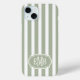 Sage Green and White Monogrammed Stripes Case-Mate iPhone Case