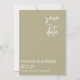 spread the great news of your wedding with this modern trendy save the date card, in sage green and white and featuring elegant text