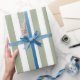 Sage Green and White Vertical Stripes Wrapping Paper