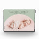 Modern and minimal newborn keepsake photo block featuring a large sage green arch frame for your baby's photo with birth stats information. Works best with a horizontal photo.