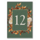 Sage Green Autumn Leaves Table Number. Add autumn elegance to your reception with this table number design featuring a border of watercolor florals and scattered leaves in rich terracotta, burnt orange, and beige. The soft sage green centre draws the eye to the number while maintaining a cohesive fall look. Let every table bloom—start customising now.
