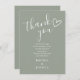A modern minimalist baby shower thank you card personalised with your thank you message and names, featuring a cute hand-drawn heart and stylish typography on a sage green background. Designed by Thisisnotme©