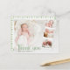 Thank your loved ones in a heartfelt and memorable way with this sage green baby shower thank you postcard, featuring soft watercolor baby blocks and a classic gingham border. The front includes space for multiple baby photos, making it a beautiful keepsake for family and friends. The back includes room for a thoughtful message, mailing address, and postage. Personalize with your baby's photos and family name to make it uniquely yours.