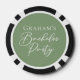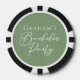 This simple solid sage green bachelor party poker chip features elegant white typography. Minimalist script on a peaceful light green chips for your groomsmen.