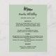 Sage green birthday party menu