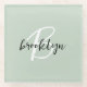 Sage Green Black and White Script Monogram Glass Coaster